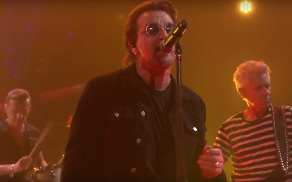 Además, aprovecharon su visita al programa estadounidense para tocar "Bullet The Blue Sky", uno de los clásicos de The Joshua Tree, que este año cumple tres décadas de su lanzamiento.