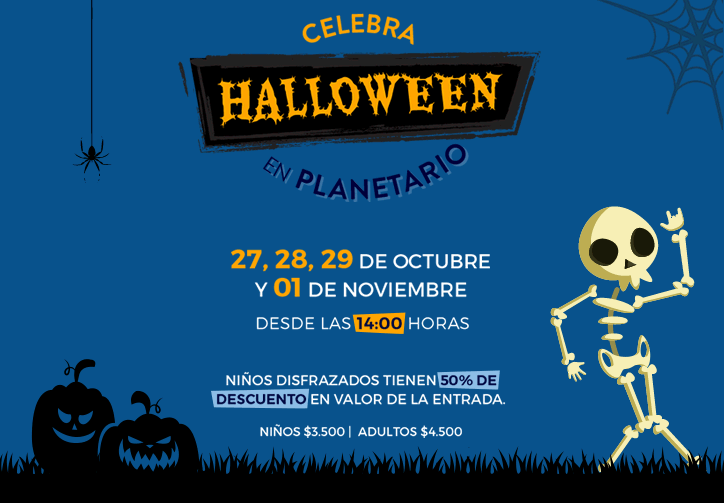 El Planetario de la Universidad de Santiago también se une a la celebración de Halloween este 2017: mañana viernes, el sábado, el domingo y el feriado del miércoles 1, todos los niños que lleguen disfrazados al recinto del Metro Estación Central tendrán un 50% de descuento.