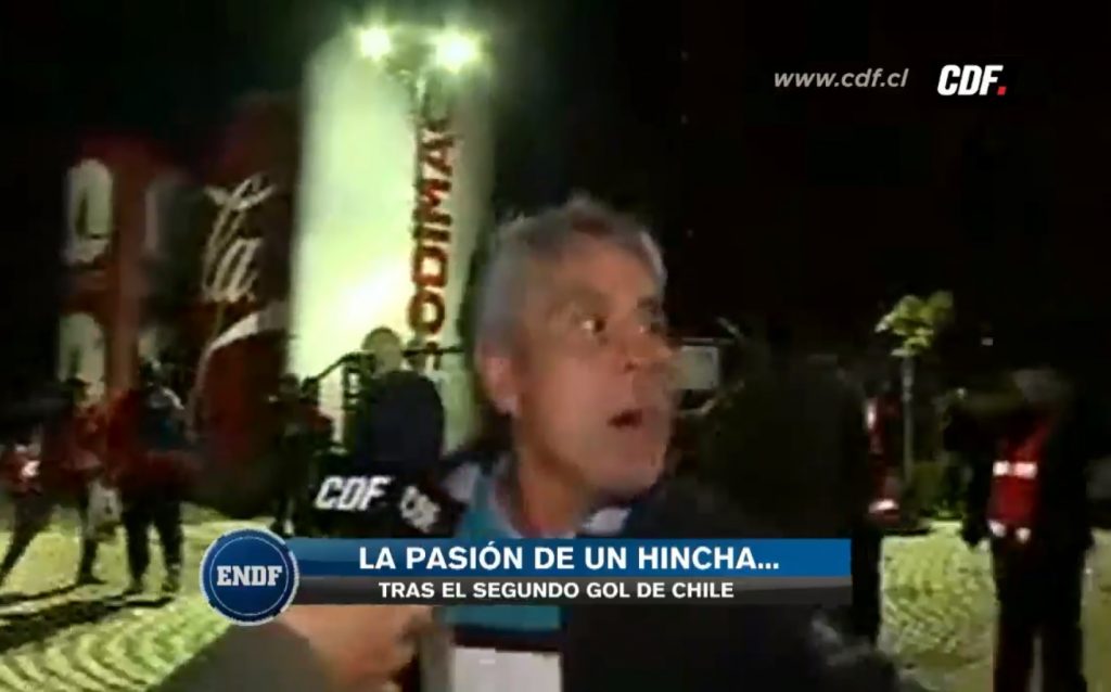 Uno de los hinchas que fue a apoyar a la selección al Estadio Monumental, se iba del recinto cuando el partido no terminaba, y fue entrevistado por CDF. "Nos fuimos a la chu...", decía, y empezó a despotricar contra los cambios de Juan Antonio Pizzi.