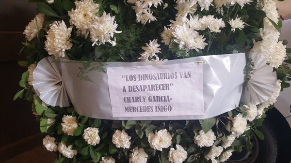Noticias Charly García rindió homenaje a al fallecido activista Santiago Maldonado Por javier valladares | 29 Nov, 2017. 13:00 hrs Charly García rindió homenaje a Santiago Maldonado, activista mapuche que desapareció tras una represión policial y apareció muerto dos meses después. El cantautor y su pareja Mercedes Iñigo envió una corona de flores al velorio de Maldonado, con una de sus frases más icónicas: "Los dinosaurios van a desaparecer". El cadáver de Maldonado fue encontrado en un río de la Patagonia. Fue declarado desaparecido el 1 de agosto, tras un operativo de gendarmería en Pu Lof de Cushamen, un asentamiento mapuche en tierras vendidas a un empresario italiano. Según informó la justicia argentina falleció a causa de ahogamiento e hipotermia. Actualidad El vocalista de New Order se suma a The Killers para cantar "Bizarre Love Triangle" Confirmado: Radiohead regresa a Chile en abril de 2018 Sigue a Concierto.cl en Google Discover Recibe nuestros contenidos directamente en tu feed. Seguir en Google Contenido patrocinado