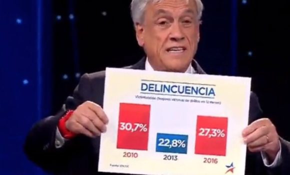 Uno de los momentos más comentados del debate presidencial de Anatel lo protagonizó Sebastián Piñera, quien exhibió un gráfico para mostrar cómo en su gobierno habían disminuido las cifras de delincuencia.