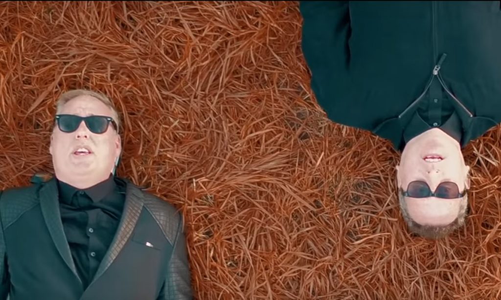 El video está grabado con una cámara cenital, mostrando diversas situaciones cotidianas y alternando con imágenes del dúo.