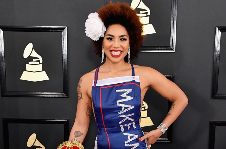 La cantante se hizo famosa durante la ceremonia de los Grammy de este año cuando lució un vestido que lucía el eslogan de campaña del actual presidente de Estados Unidos: “Make America Great Again”.