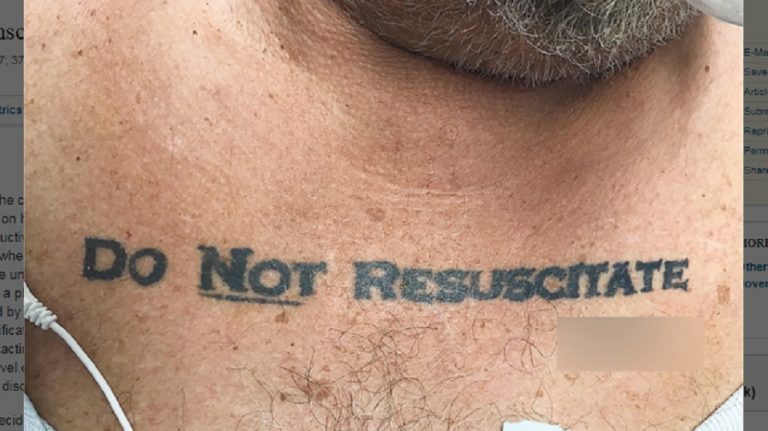Un hombre de 70 años llegó inconsciente y con un alto grado de alcohol en la sangre, donde un tatuaje dejó en jaque al equipo médico del Hospital Jackson Memorial de Miami en Estados Unidos. El sujeto, que estaba al borde la muerte, tenía grabado en su pecho el mensaje “no resucitar” junto a su firma.