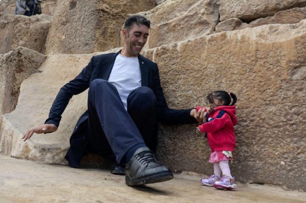 Dos extremos reunió la Junta de Promoción Turística de Egipto para promocionar la visita de extranjeros en el país africano: Hicieron posar a Sultan Kose y Jyoti Amge, el hombre más alto y mujer más pequeña del mundo, respectivamente. El turco mide 2,46 metros y la turca 62,8 centímetros.