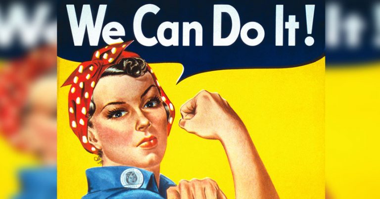 Muchos hemos visto el afiche de la mujer remachadora, donde aparece vestida con una camisa azul, un pañuelo rojo de lunares blancos en el pelo, remangándose para mostrar músculo.