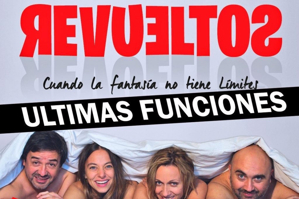 Este fin de semana son las últimas funciones de la obra Revueltos, cuando la fantasía no tiene límites. Protagonizada por Mariana Derderian, Álvaro Morales, Katyna Huberman y Christian Zúñiga, esta divertida comedia explora en el intercambio de parejas entre dos matrimonios de amigos. Viernes 26 y sábado 27 de enero a las 21 horas. Entradas en la web del teatro.
