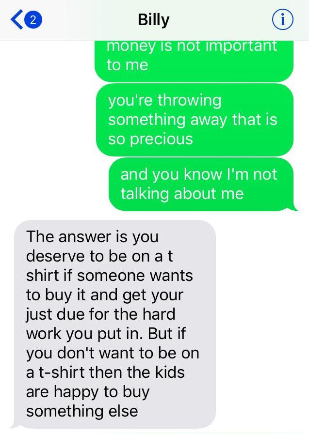 Wretzky finalmente le reprocha a Corgan que tiró a la basura "una oportunidad preciosa", y este, de forma insólita, le responde que ella se merece "una polera con su rostro en ella".