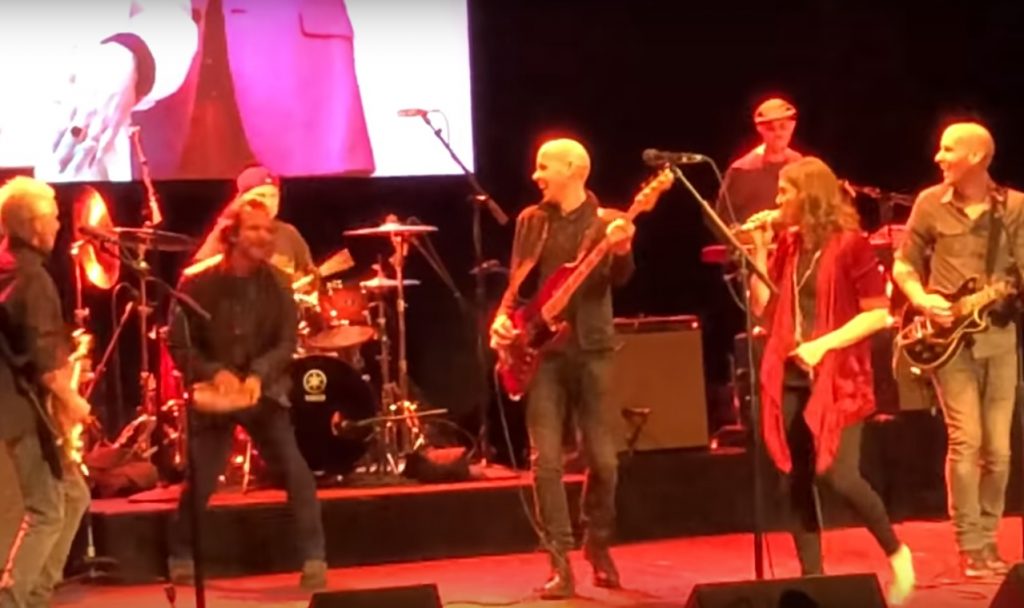 Eddie Vedder, Mike McCready y Chad Smith, acompañados por el actor Will Ferrell y la intérprete de "The Story", fueron parte de un evento benéfico en Seattle, donde tocaron el megahit "Personal Jesus".