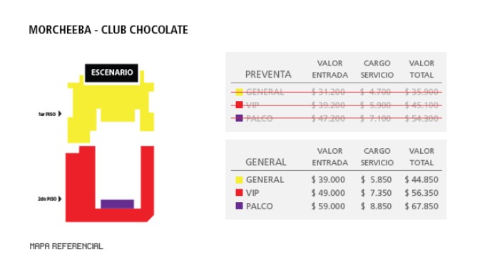 Los boletos en dicha modalidad tenían descuento, pero se despacharon en dos días. En la venta normal, tienen un valor de $44.850 admisión general, $56.350 en VIP y $67.850 en Palco, disponibles en Puntoticket.