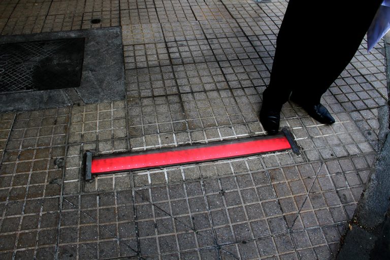 La Municipalidad de Las Condes anunció este miércoles el inicio de un plan piloto de repetidores de semáforos, que tiene por objetivo reflejar las luces de los semáforos en el suelo para aquellos peatones que caminan mirando las pantallas de los celulares.