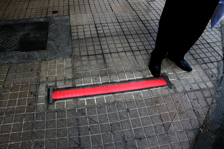 La Municipalidad de Las Condes anunció este miércoles el inicio de un plan piloto de repetidores de semáforos, que tiene por objetivo reflejar las luces de los semáforos en el suelo para aquellos peatones que caminan mirando las pantallas de los celulares.