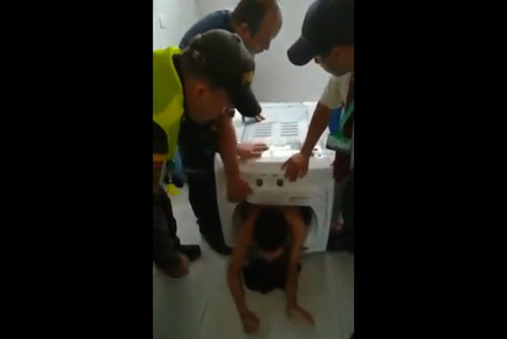 El pequeño se metió en la lavadora, de donde no pudo salir por su propia cuenta. Los vecinos alertados por sus gritos de auxilio llamaron a las autoridades para reportar el hecho y rescatarlo.