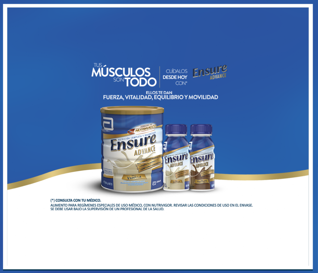 Ensure Advance te ayuda a mantener la fuerza, vitalidad, equilibrio y movilidad que necesitas cada día. Con Ensure Advance. Cuida tus músculos y ellos cuidarán de ti. Consulta con tu médico.