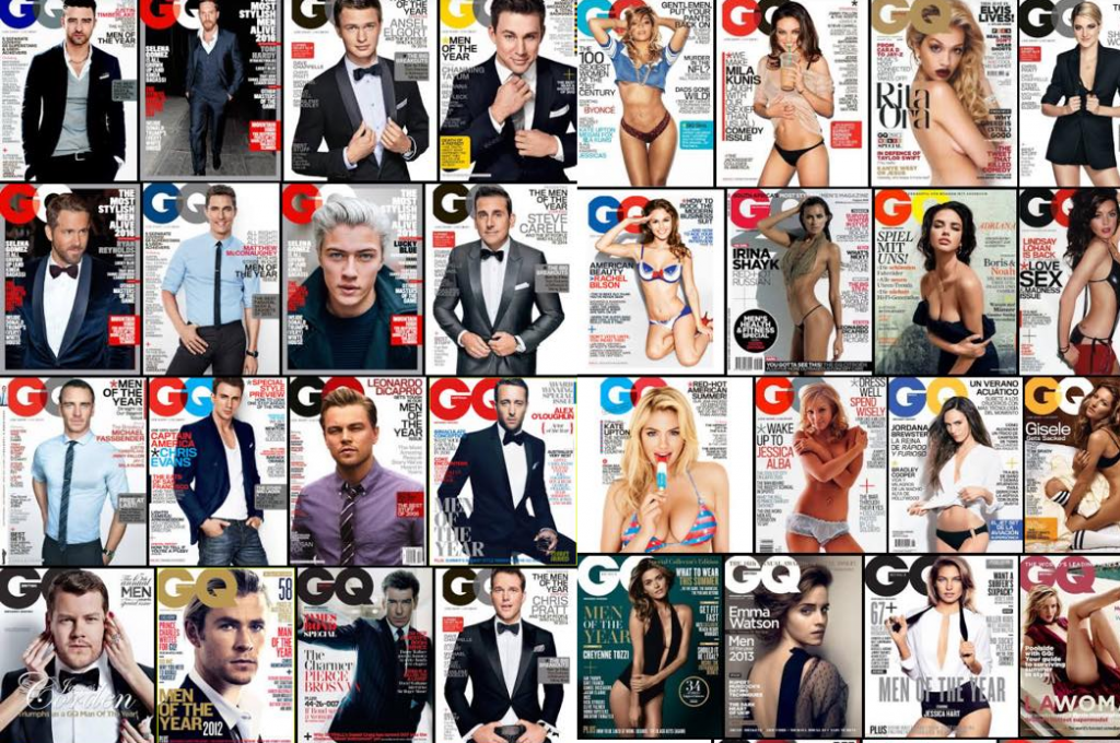 Mientras que han desfilado Leonardo DiCaprio, Barack Obama, Chris Evans, entre otros, suelen estar vestido de traje y con una pose seria que trasunta hidalguía. Pero al momento de aparecer Mila Kunis, Jessica Alba o Rita Ora, sus posturas son en traje de baño, lencería o derechamente desnudas con una mirada erótica.