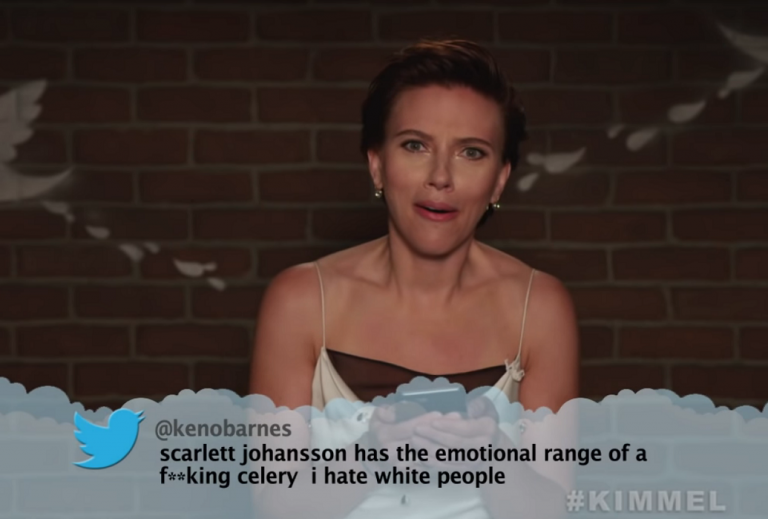 Noticias Miembros de Avengers: Infinity War leyeron sus tuits crueles Scarlett Johansson, Elizabeth Olsen, Samuel L. Jackson, Chris Pratt, Chris Evans, entre otros revisaron mensajes hirientes. Por javier valladares | 02 May, 2018. 11:45 hrs Mean Tweets es una de las secciones del programa de Jimmy Kimmel, donde celebridades leen crueles mensajes de Twitter. En esta nueva edición pasó el elenco de Avengers: Infinity War y los usuarios de Twitter no dejaron pasar a ninguno. Scarlett Johansson, Elizabeth Olsen, Samuel L. Jackson, Chris Pratt, Chris Evans, entre otros, revisaron mensajes hirientes, donde fueron tratados de "feos", "poco talentosos", los compararon con animales y verduras, dejaron al descubierto rarezas físicas, trataron de idiotas y mucho más. Los actores reaccionaron con asombro frente a algunas publicaciones, mientras que otros solo se limitaron a reírse frente al ingenio de los usuarios de la red social. Puedes ver el video completo a continuación: Magazine Oficial: Westworld tendrá tercera temporada La marca de guitarras Gibson se declara en quiebra Sigue a Concierto.cl en Google Discover Recibe nuestros contenidos directamente en tu feed. Seguir en Google Contenido patrocinado VIDEOS RELACIONADOS U2 y "How to Dismantle an Atomic Bomb": a 21 años de su conquista en Reino Unido "Band on the Run" de Wings: 52 años del álbum que consolidó a Paul McCartney más allá de The Beatles Seal anuncia "Purpose", su película concierto que celebra 30 años de sus álbumes clásicos Scott Weiland vuelve a sonar: lanzan "If I Could Fly" a 10 años de su fallecimiento