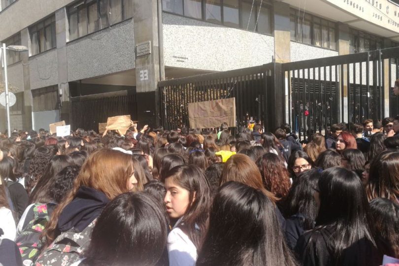 Estudiantes del Liceo 1 y de otros liceos de niñas marcharon hacia el Instituto Nacional para protestar contra el #machismo de institutanos. pic.twitter.com/zfW3XQP0yy
