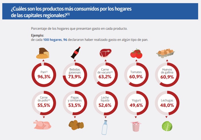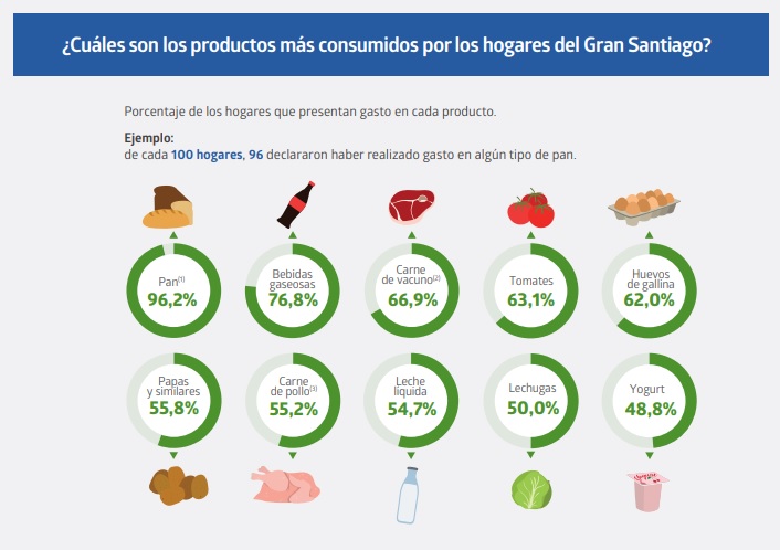 En el desglose del informe, también se reveló cuáles son los diez alimentos más consumidos por los chilenos tanto en Santiago como en las capitales regionales.
