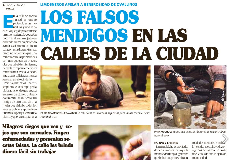 Este domingo, el diario regional El Ovallino publicó una crónica para denunciar a "los falsos mendigos en las calles de la ciudad".
