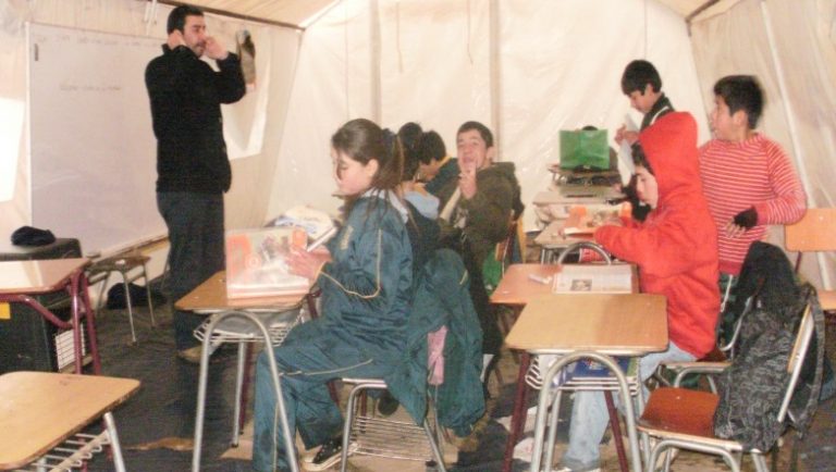 “Estuvimos con mediaguas, carpas, con letrinas”, explicó la directora. “Si usted hubiese visto las carpas en ese tiempo, pozas de agua porque por dentro teníamos la estufa y por fuera era el frío. Entonces, el agua corría constantemente en las paredes de la carpa”.
