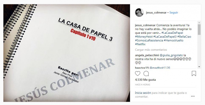 El productor ejecutivo de la serie publicó una una fotografía de la portada del guión de la serie. “Comienza la gran aventura! Ya. no hay vuelta atrás… No podéis imaginar lo que está por venir…”, escribió junto a la imagen.