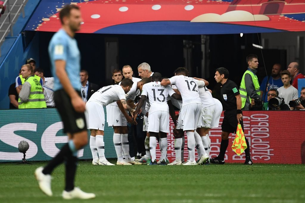 Los galos superaron a la celeste por dos tantos a cero: El primer gol lo marcó Varane a los 39', quien desvió sutilmente un tiro libre de Griezmann desde la derecha.