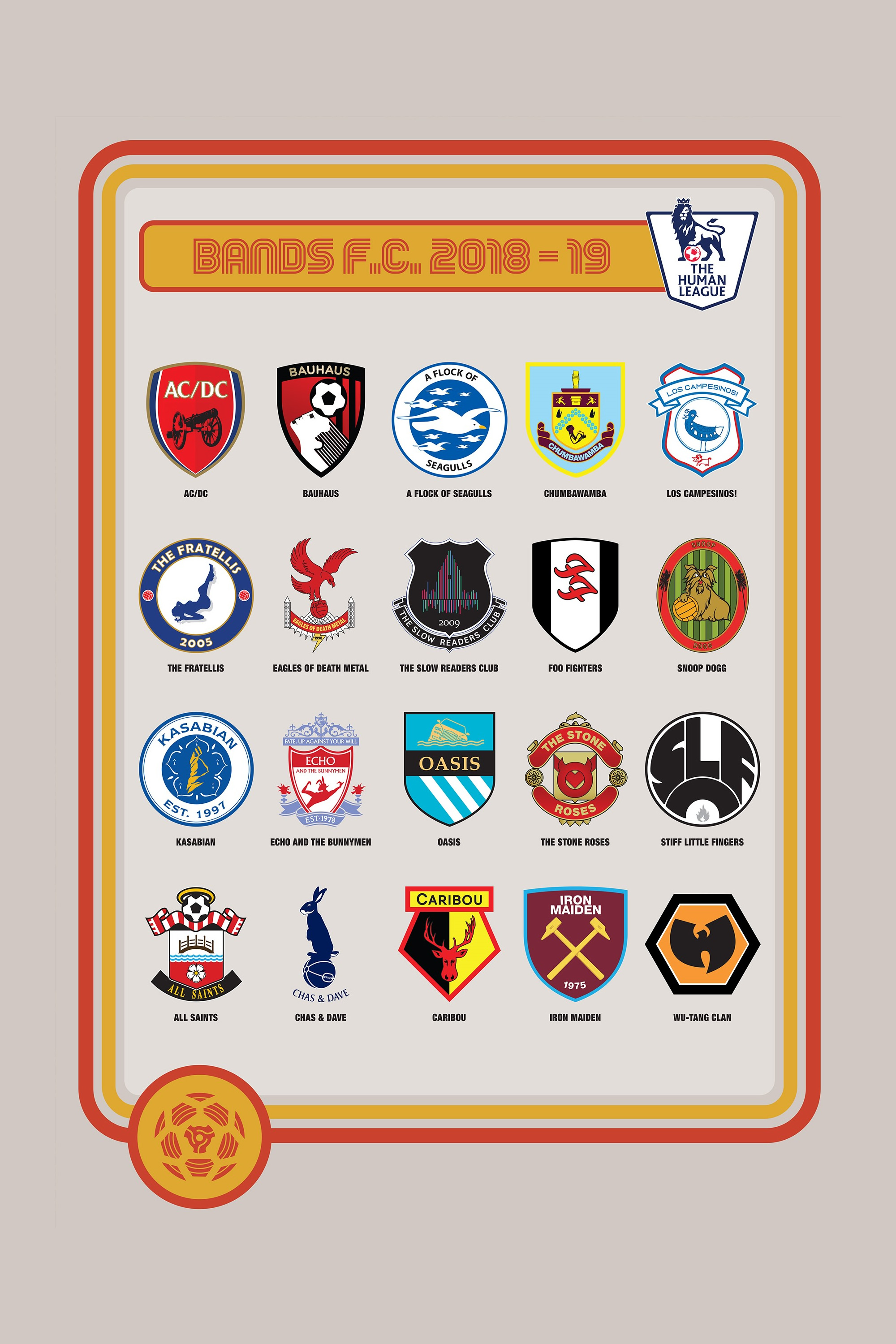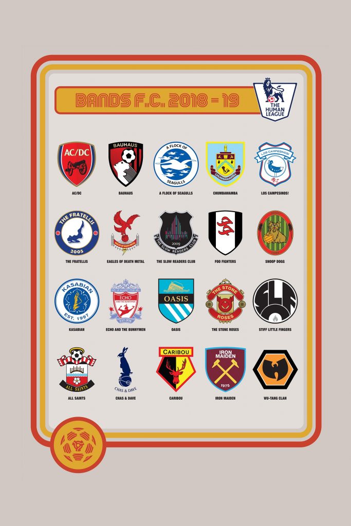 Ambos son responsables de Bands FC, un emprendimiento que reimagina "bandas como equipos de fútbol y equipos de fútbol como bandas", mezclando la iconografía de artistas y los escudos.