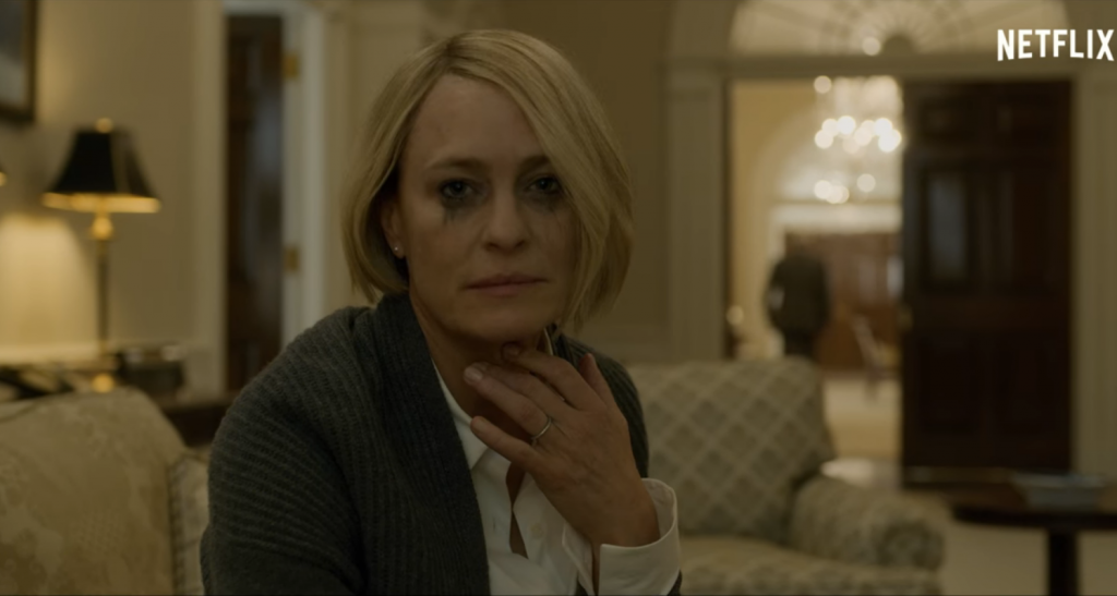 En el nuevo avance de la serie de Netflix, se puede ver que el personaje, interpretado por Robin Wright, ha estado en el cargo de presidente por 100 días, Frank Underwood está muerto, y ahora todos se enfrentan a las consecuencias de las mentiras que su esposo dijo alguna vez.