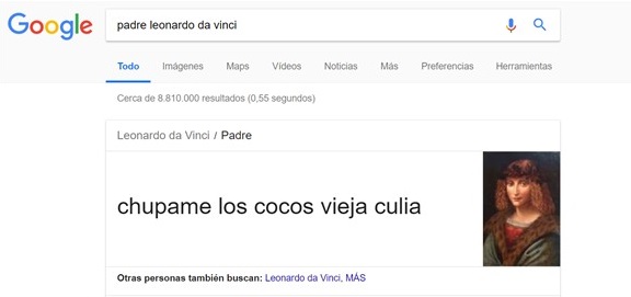 En las últimas horas, se viralizó una insólita y grosera respuesta que entregaba Google al buscar al padre de Leonardo Da Vinci.
