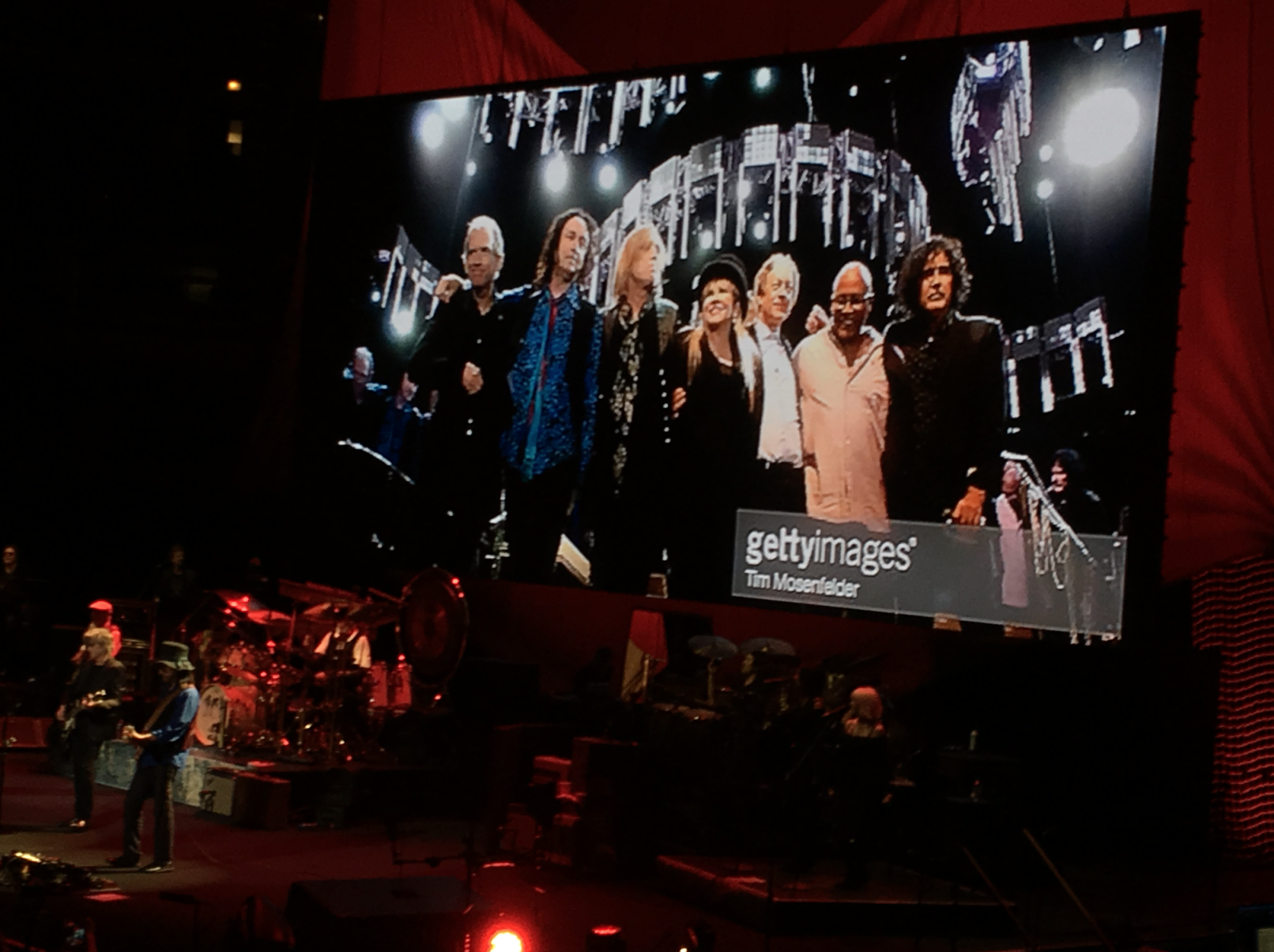 Precisamente, la agrupación ha realizado homenajes al ex Traveling Wilburys durante los espectáculos, interpretando el tema "Free Fallin'". Según reporta CoS, durante la interpretación del tema ha llamado la atención el uso de imágenes de apoyo sin pagar por ellas, lo que quedó en evidencia con un enorme logo de Getty Images.