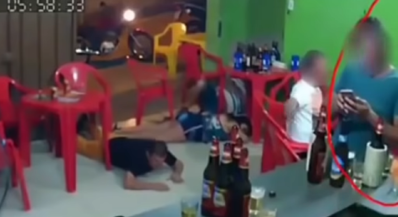 Un hombre no se dio cuenta que asaltaban el local donde se encontraba bebiendo por estar concentrado mirando su celular.
