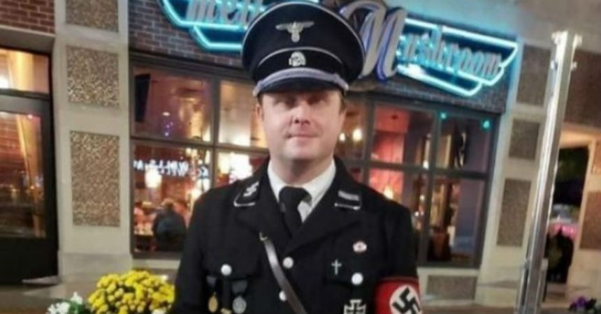 Bryant Goldbach, originario de Kentucky, Estados Unidos, ha causado polémica en las redes sociales a nivel mundial, debido a su elección de disfraz para él y su hijo, informó 20 Minutos. El sujeto acudió a un evento de Halloween disfrazado como soldado nazi y a su hijo lo vistió, bigote incluido, como Adolf Hitler.