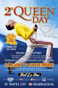 Agenda Concierto Queen Day en Bal-Le-Duc Por Amalia Sepulveda | 16 Nov, 2018. 12:41 hrs Mañana sábado 17 de se celebra el segundo Queen Day en Bal-Le-Duc del Metro Irarrázaval, ubicado en Av. Matta 129. El evento comienza a las 19.30 horas y contará con exposición de fanáticos, tiendas, concursos, fiesta y música en vivo con la banda tributo A Band of Magic. La entrada es gratuita hasta las 21.00 horas. Hasta las 00.00 tiene un valor de $3000 y después de esa hora $5000. Para más información visita Bal-le-duc-cl Agenda Concierto Cine pedaleable: Documental Te Kuhane o Te Tupuna Sinéad O’Connor se burló de Bono en Twitter y lo imitó Sigue a Concierto.cl en Google Discover Recibe nuestros contenidos directamente en tu feed. Seguir en Google Contenido patrocinado