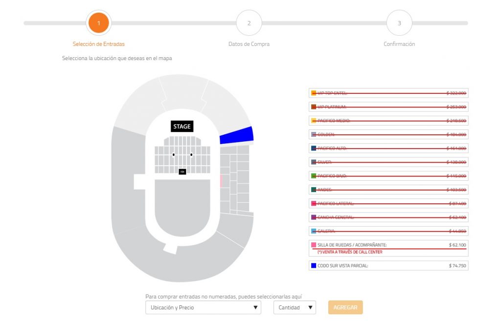 Debido a la alta demanda de entradas, la productora a cargo del show decidió habilitar una nueva ubicación con vista parcial, a un costado del escenario: Codo sur vista parcial, que tiene un valor de $74.750, cargo por servicio incluido.