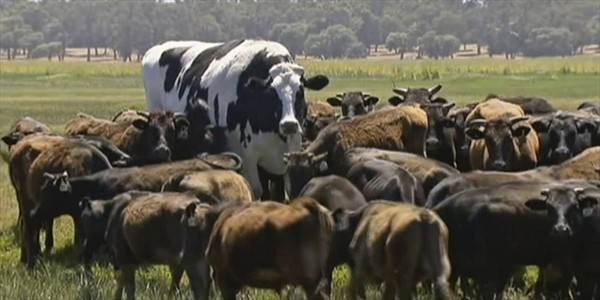 Knickers, una vaca gigante australiana, se salvó de ser llevada al matadero debido a sus casi 2 metros de alto. El animal también sobresale por encima del resto de bóvidos de su granja,gracias a sus 1400 kilos de pesos, que equivale al doble de la media común.
