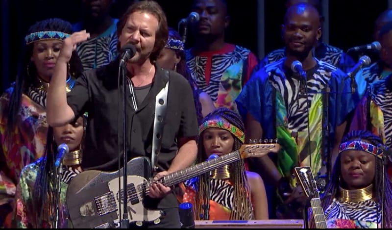 Eddie Vedder fue uno de los invitados musicales al Global Citizen: Mandela 100, un concierto en Sudáfrica que celebró el que habría sido el cumpleaños número 100 de Nelson Mandela.