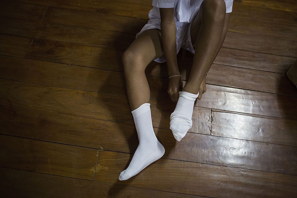 During the ordination ceremony, boys are carried everywhere and wear new white socks to show that they have not been walking at Wat Supan Rangsri on April 06, 2016 in Mae Sariang, Thailand. Han, 10, and Kemachart, 11, are neighbors in Chiang Mai's ethnic Tai Yai (Shan) community who have travelled to Mae Sariang near the Burmese border for the Poy Sang Long ordination ceremony where their family roots and traditional culture remain strong. Poy Sang Long is a Buddhist novice ordination ceremony of the Shan people or Tai Yai, an ethnic group of Shan State in Myanmar and northern Thailand. Young boys aged between 7 and 14 are ordained as novices to learn the Buddhist doctrines.