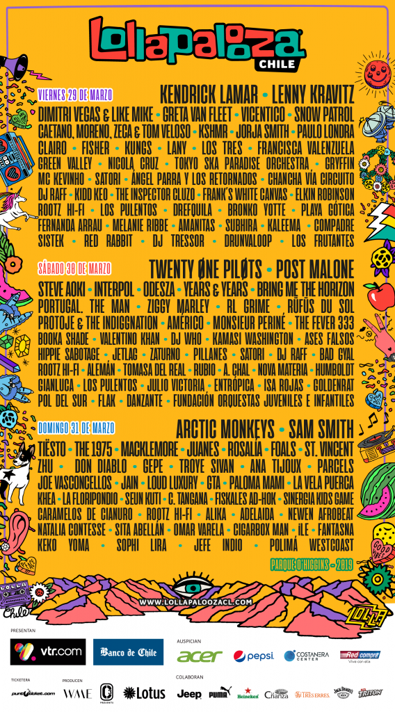 Lollapalooza Chile 2019 anunció nuevas incorporaciones y anunció el line-up diario de sus tres jornadas, a realizarse entre el 29 y el 31 de marzo en Parque O'Higgins.