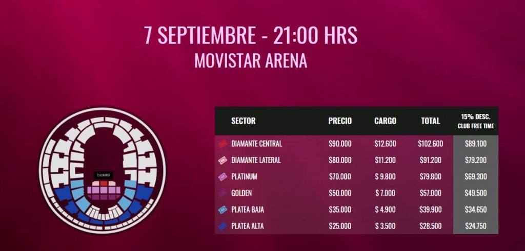 Las entradas para el show se encuentra disponibles en Puntoticket, con valores que parten en los $28.500, cargo por servicio incluido.