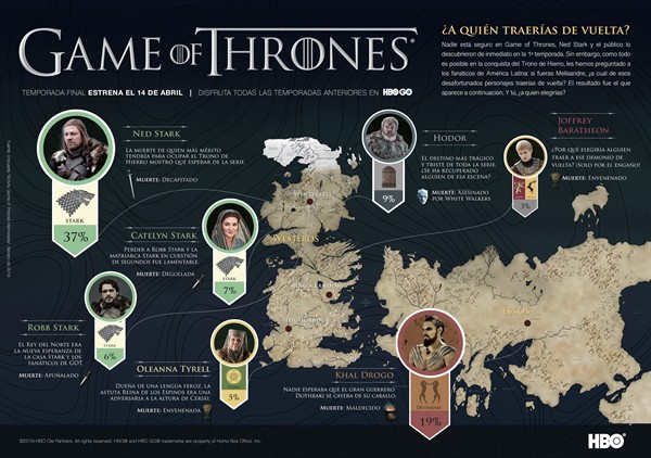 Los fanáticos de Game of Thrones respondieron una encuesta realizada por HBO Latinoamerica, en la que fueron consultados por qué personaje de la serie revivirían.