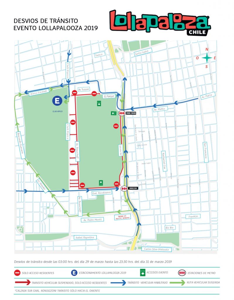 Las siguientes calles aledañas al Parque estarán cerradas los tres días de festival: