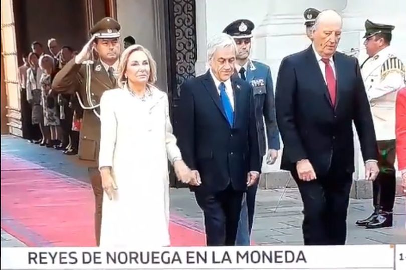 Cuando Harald V y Sonja ingresaron a La Moneda, el presidente y la primera dama los acompañaron, y se pudo ver cómo esta intentó tomarle la mano al mandatario. Aunque hicieron un sutil contacto físico, y el jefe de Estado intentó devolver el gesto, no lograron darse la mano.