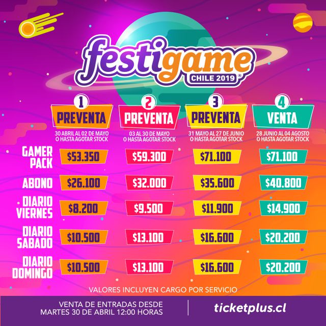 Este martes 30 de abril, al mediodía - y bajo el sistema Ticketplus comenzará la venta de entradas para la tan esperada octava versión de FestiGame 2019.