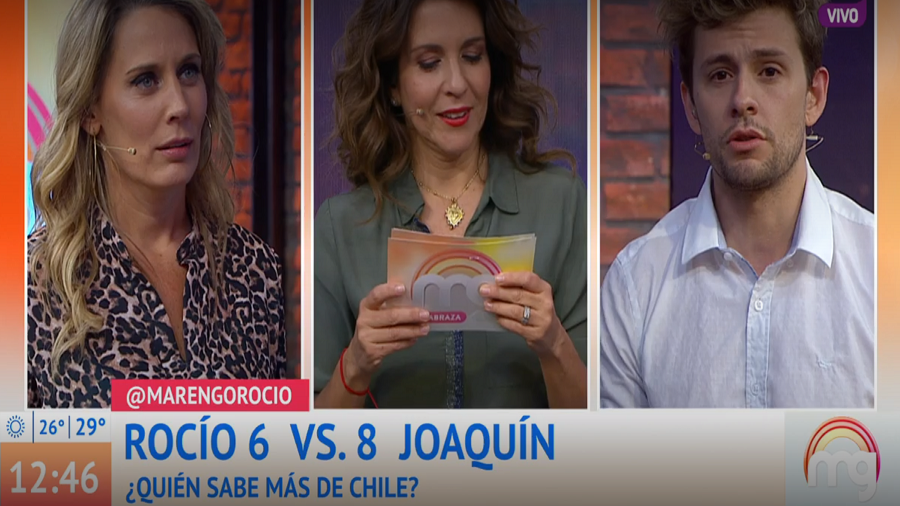 Más de diez preguntas definieron a Joaquín Méndez como más chileno que Rocío Marengo. Esto, luego de enfrentarse a una serie de interrogante en el matinal Mucho Gusto.
