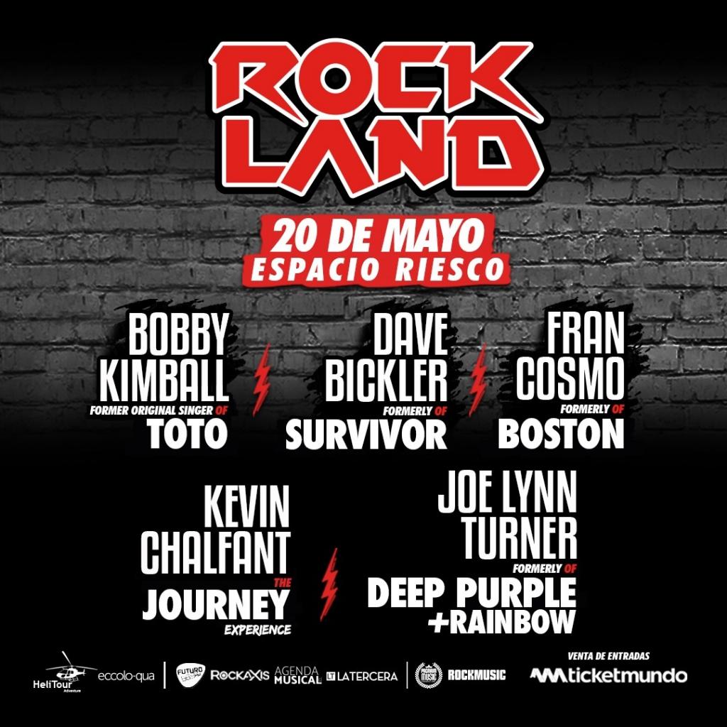 La cita será el 20 de mayo en Expocenter de Espacio Riesco, encuentro en el que dirán presente Bobby Kimball, voz original de Toto, Joe Lynn Turner, exvocalista de Deep Purple y Rainbow, Fran Cosmo, excantante de Boston, Kevin Chalfant, quien reemplazó a a Steve Perry en Journey y Dave Bickler, el vocalista original de Survivor y quien se presentará por primera vez en Chile.