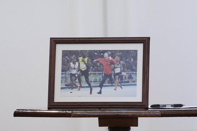 Aunque en un comienzo se informó que el jefe de Estado le había regalado la foto a Bolt, sólo se la mostró. Según informa ADN, el ganador de múltiples medallas olímpicas se tomó la situación con buen humor y agradeció el gesto de la autoridad.