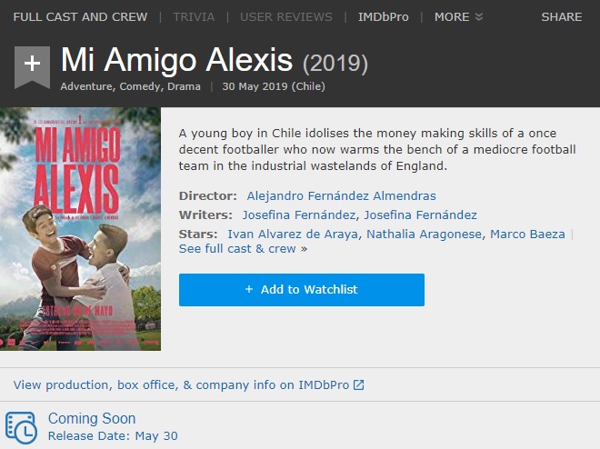 Algo menos amistoso es lo que aparece en la descripción de la cinta en IMDB, la base de datos de cine y series más respetada de la red: en el texto se critica al tocopillano por su nefasto paso por el Manchester United, donde prácticamente no ha convertido y ha sido irregular.