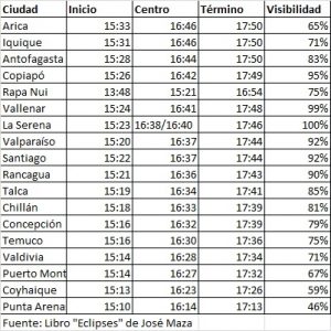 En Santiago, por ejemplo, el eclipse solar se mostrará desde las 15.22 horas hasta las 17.44 horas, con una visibilidad de un 92%.