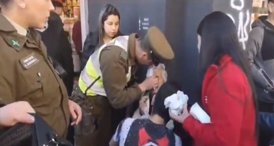 Según los denunciantes, un funcionario de Carabineros no identificado empujó a una anciana provocando su caída y posterior golpe en la cabeza, el que le ocasionó una herida y sangramiento.