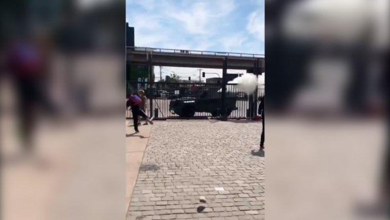 Acto seguido, el zorrillo procedió a lanzar gas lacrimógeno a la gente.